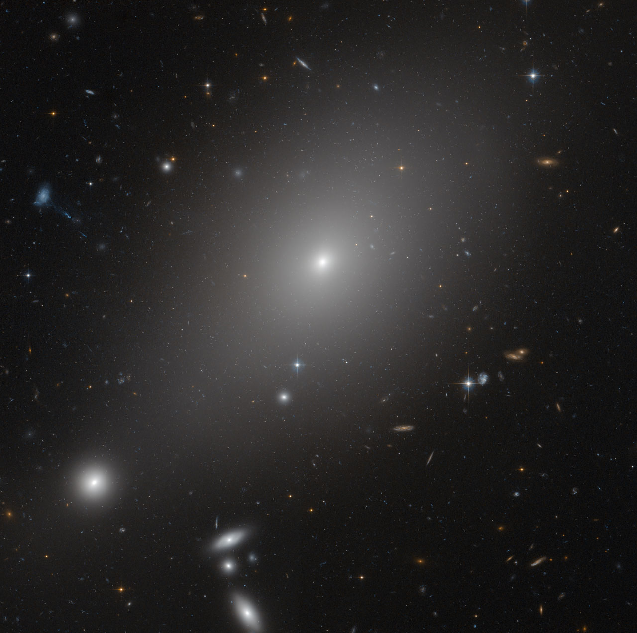 Wetenschappers gebruiken de foto onder meer om te zoeken naar de eventuele nabije aanwezigheid van ultracompacte dwergstelsels, de schamele restanten van stelsels die het slachtoffer zijn geworden van deze kosmische bullebak.